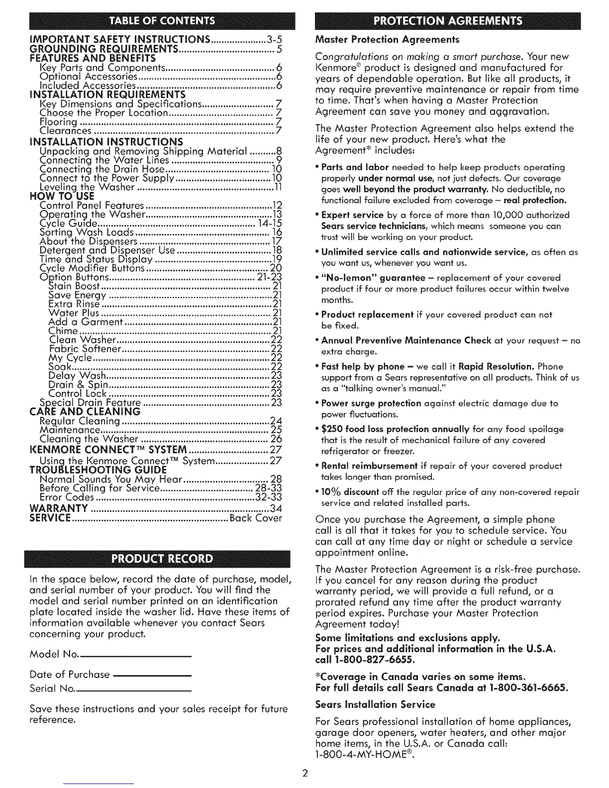 KENMORE CONNECT TM SYSTEM .............................. 27