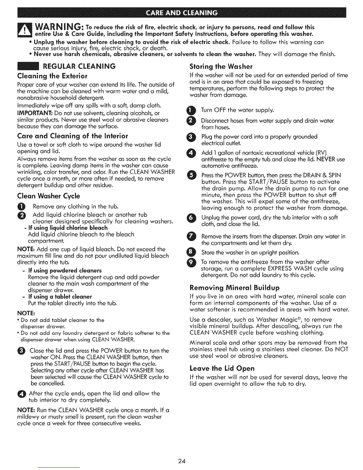 NOTE: Run the CLEAN WASHER cycle once a month. If a