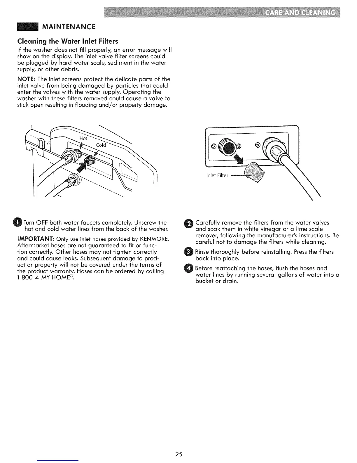 IMPORTANT: Only use inlet hoses provided by KENMORE.