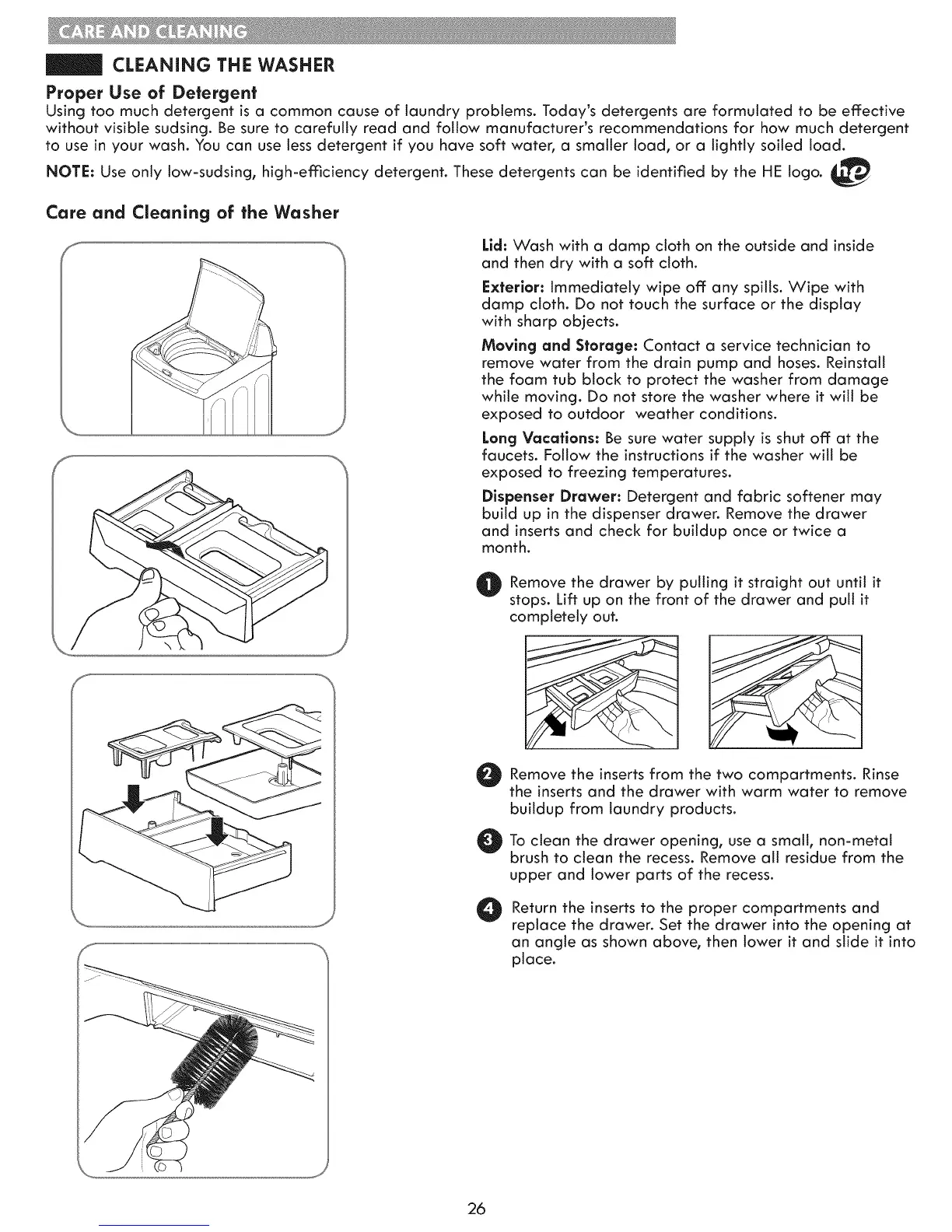 only low-sudsing, high-efflciency detergent. These detergents can be identified by the HE logo.