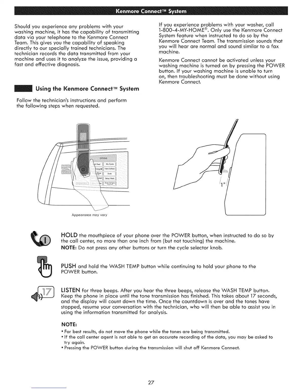 1-800-4-MY-HOME ®. Only use the Kenmore Connect