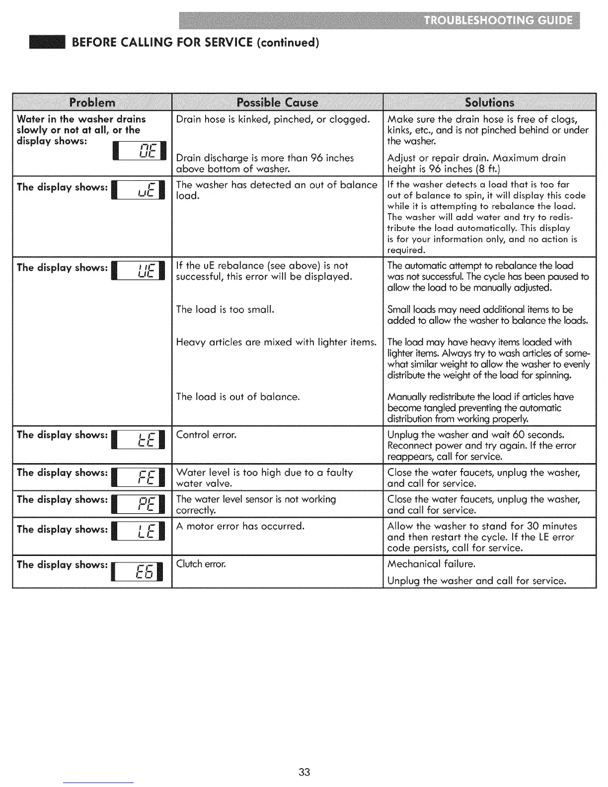 BEFORE CALLING FOR SERVICE (continued)