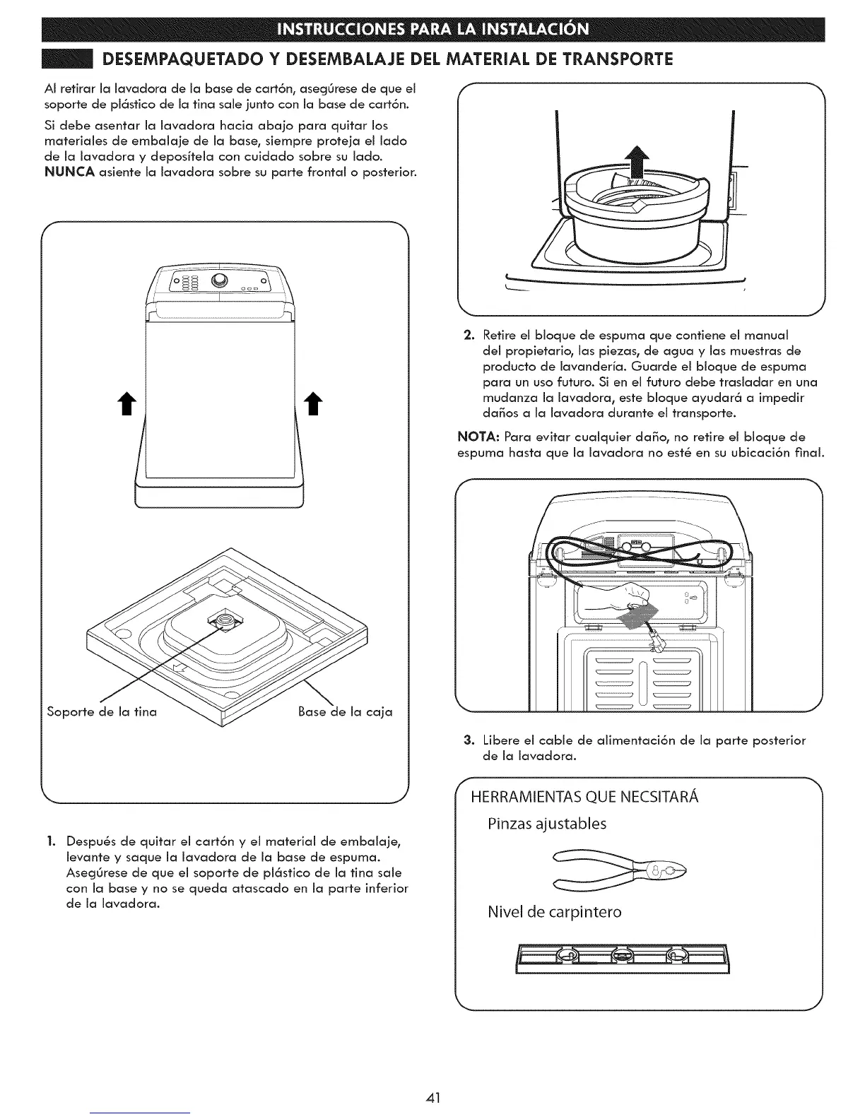 espuma hasta que ia iavadora no est8 en su ubicaci6n final.