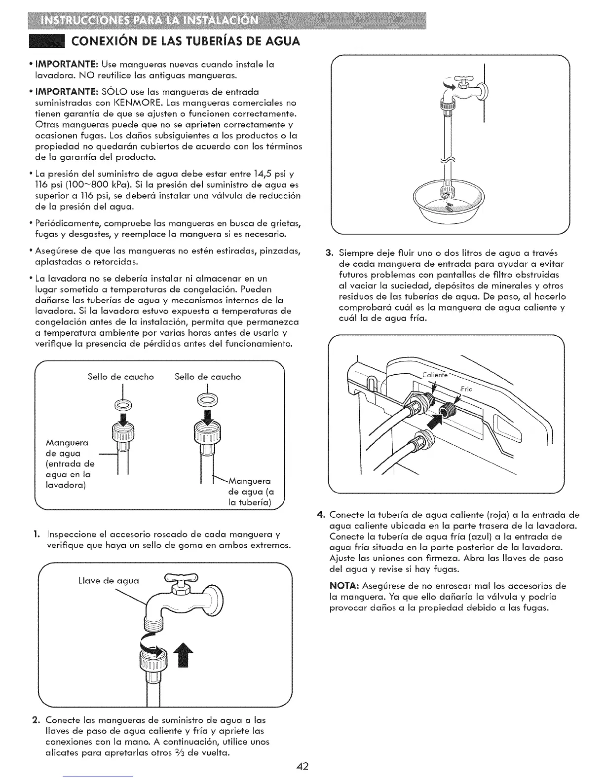 suministradas con KENMORE. Las rnancjueras comerciaJes no