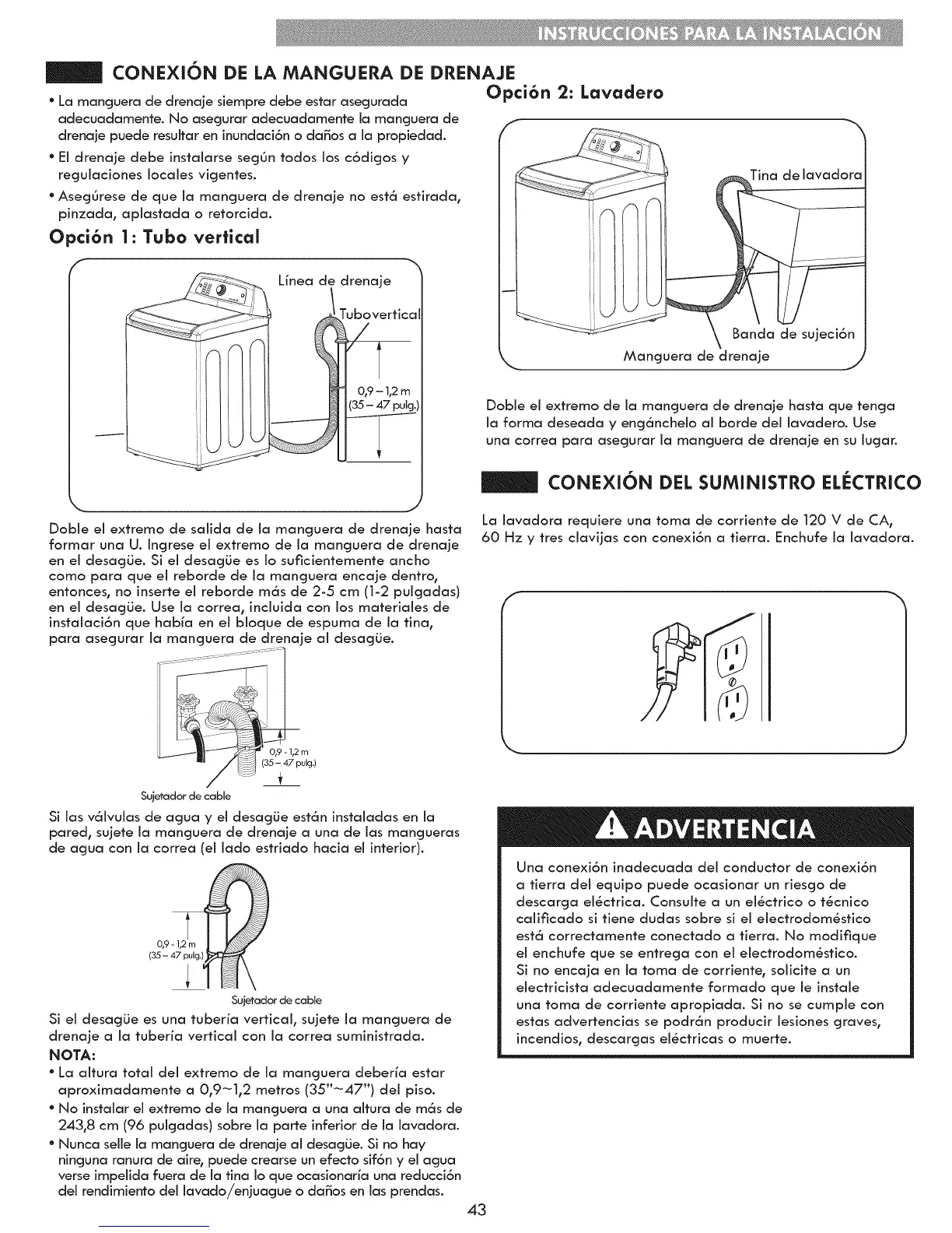 60 Hz y tres ciavijas con conexi6n a tierra. Enchufe ia iavadora.
