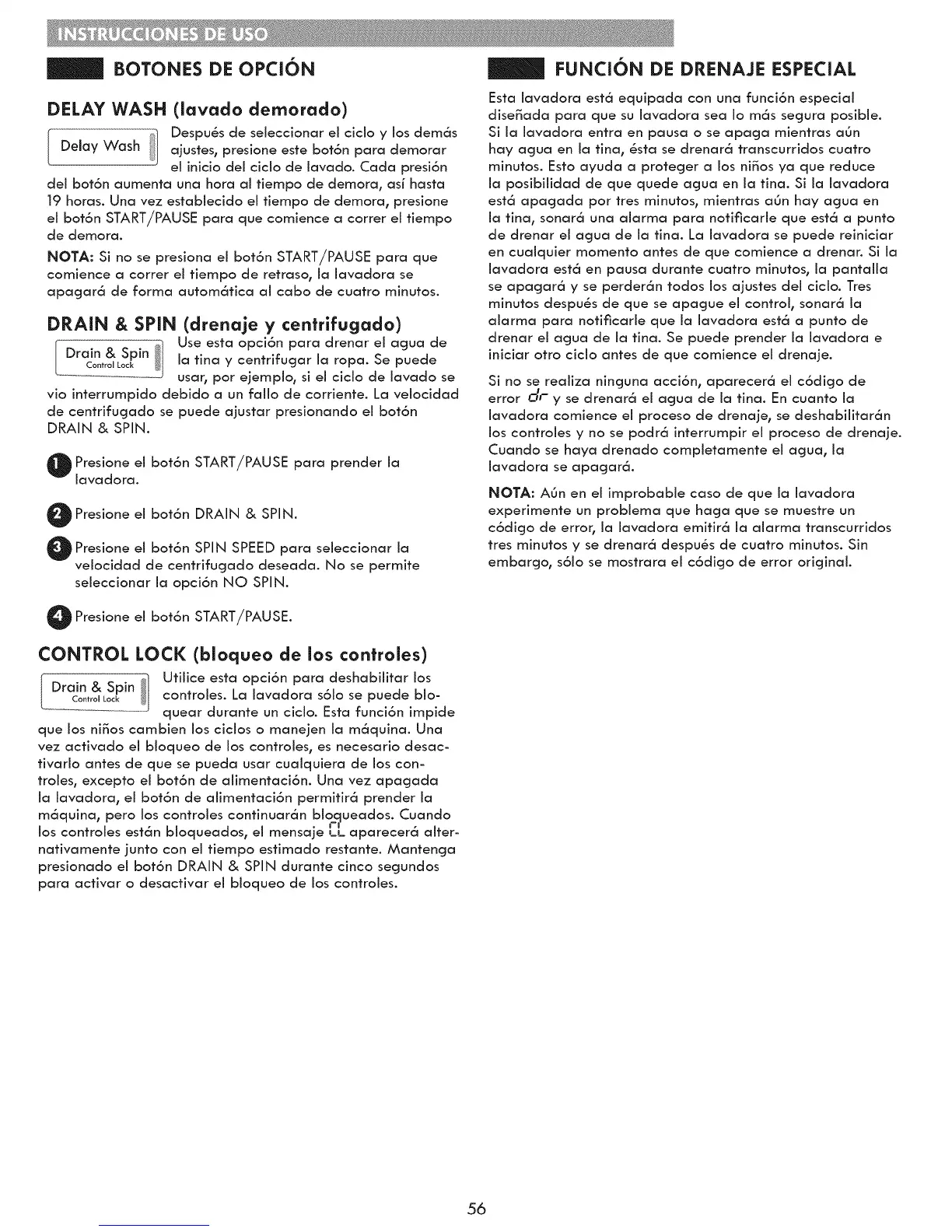 Drainco_t_ol&LockSpin!l_ controles. La iavadora s6io se puede bio-