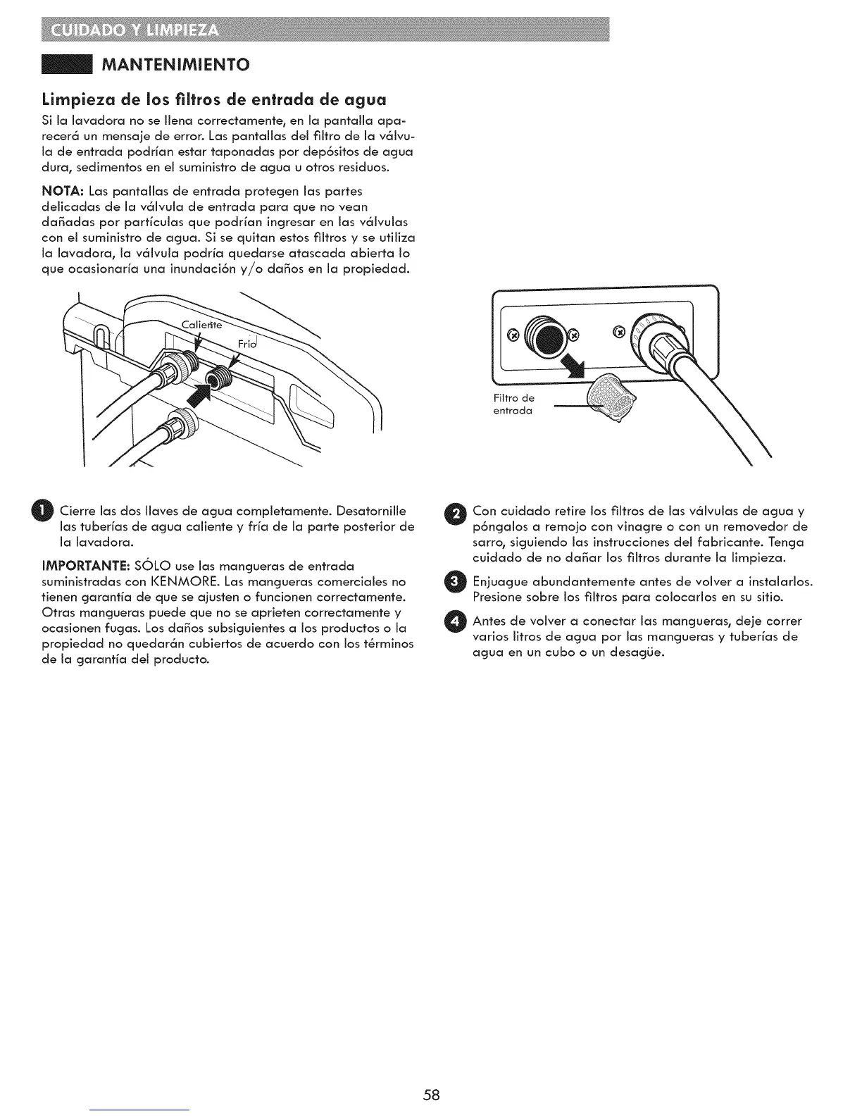 O on cuidado retire los fiitros de ias v6ivulas de acjua y