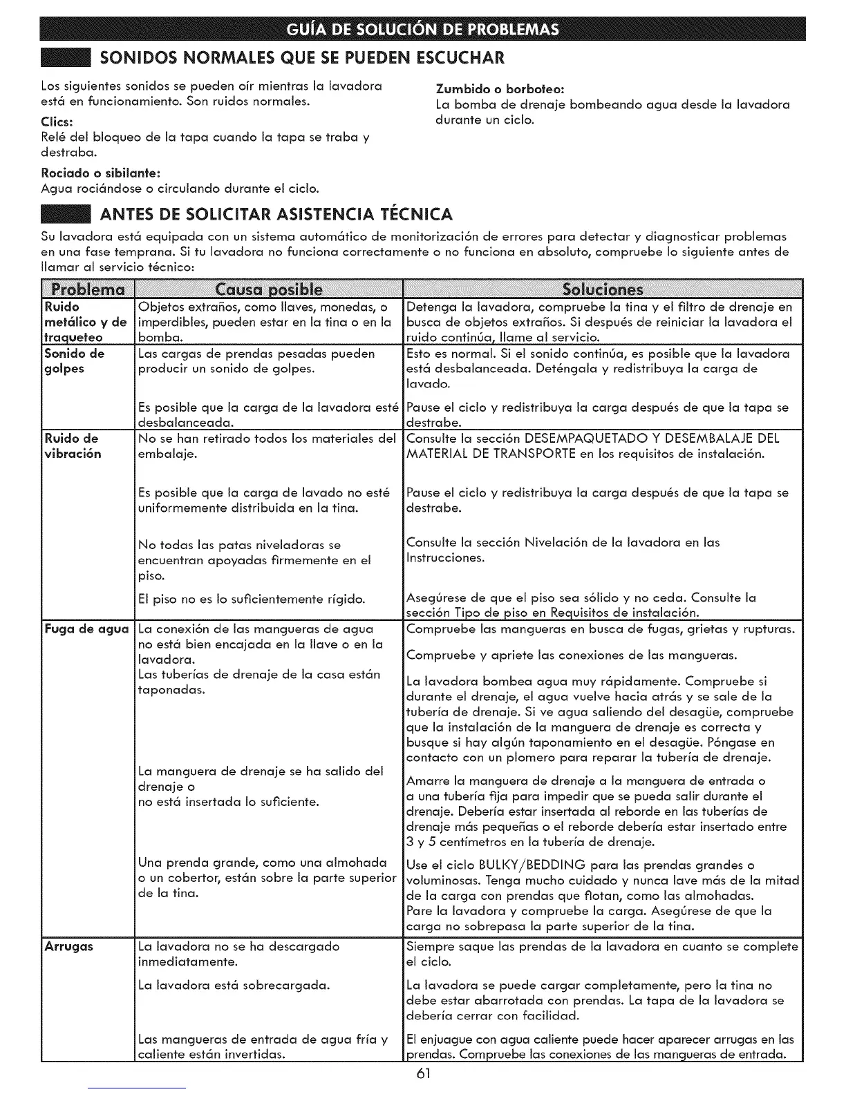 SonJdo de Las cargas de prendas pesadas pueden Esto es normal Si el sonida continOa, es posibJe que la lavadara