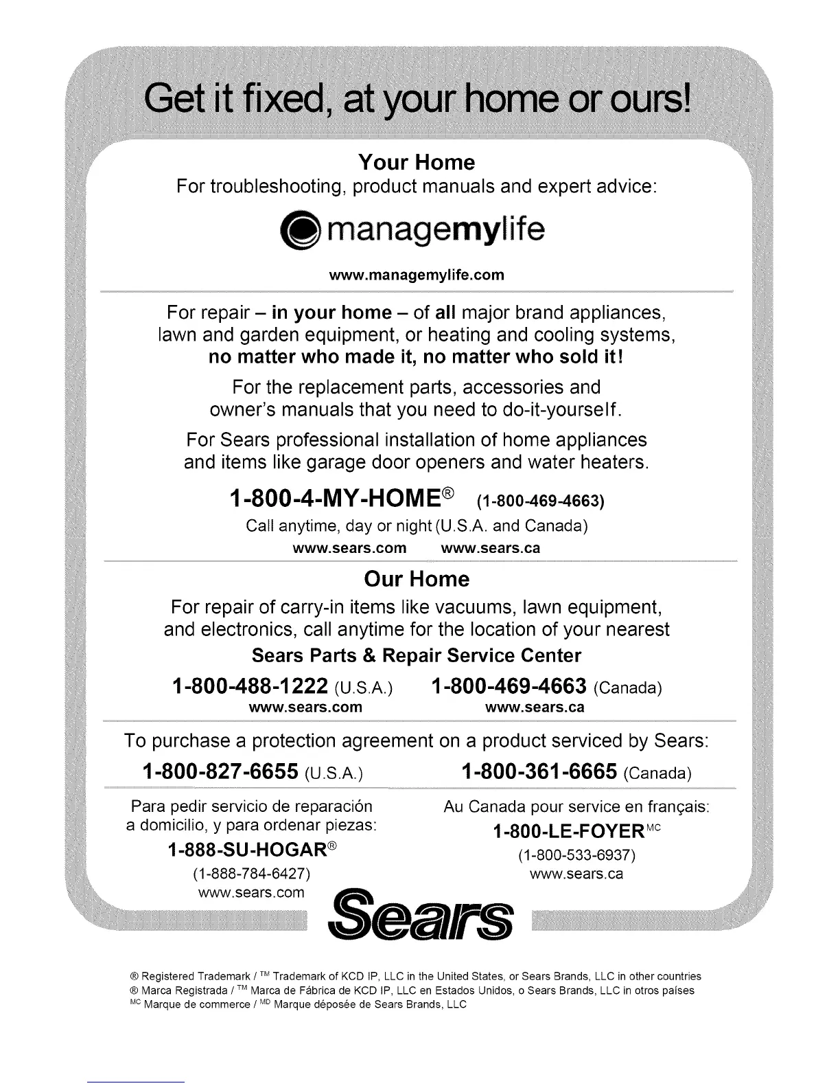 ® Registered Trademark / Trademark of KCD IP, LLC in the United States, or Sears Brands, LLC in other countries
