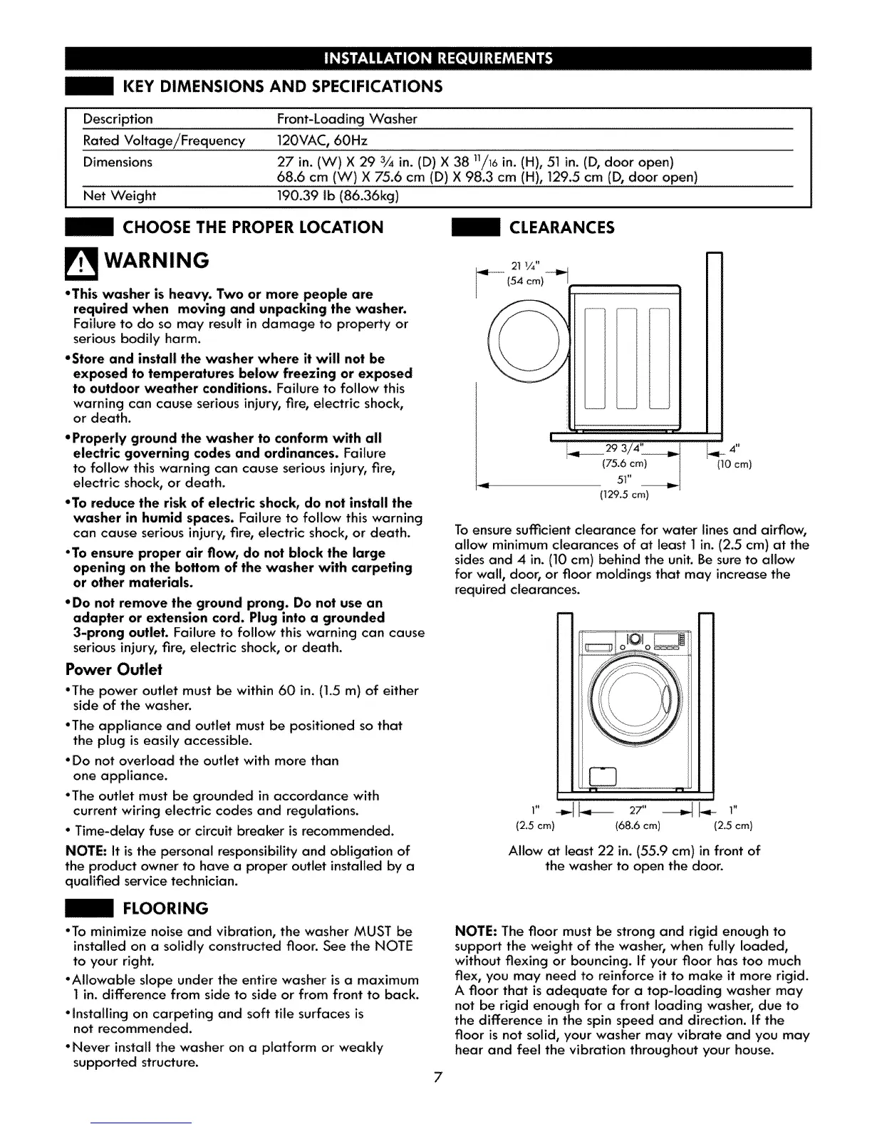 •This washer is heavy. Two or more people are