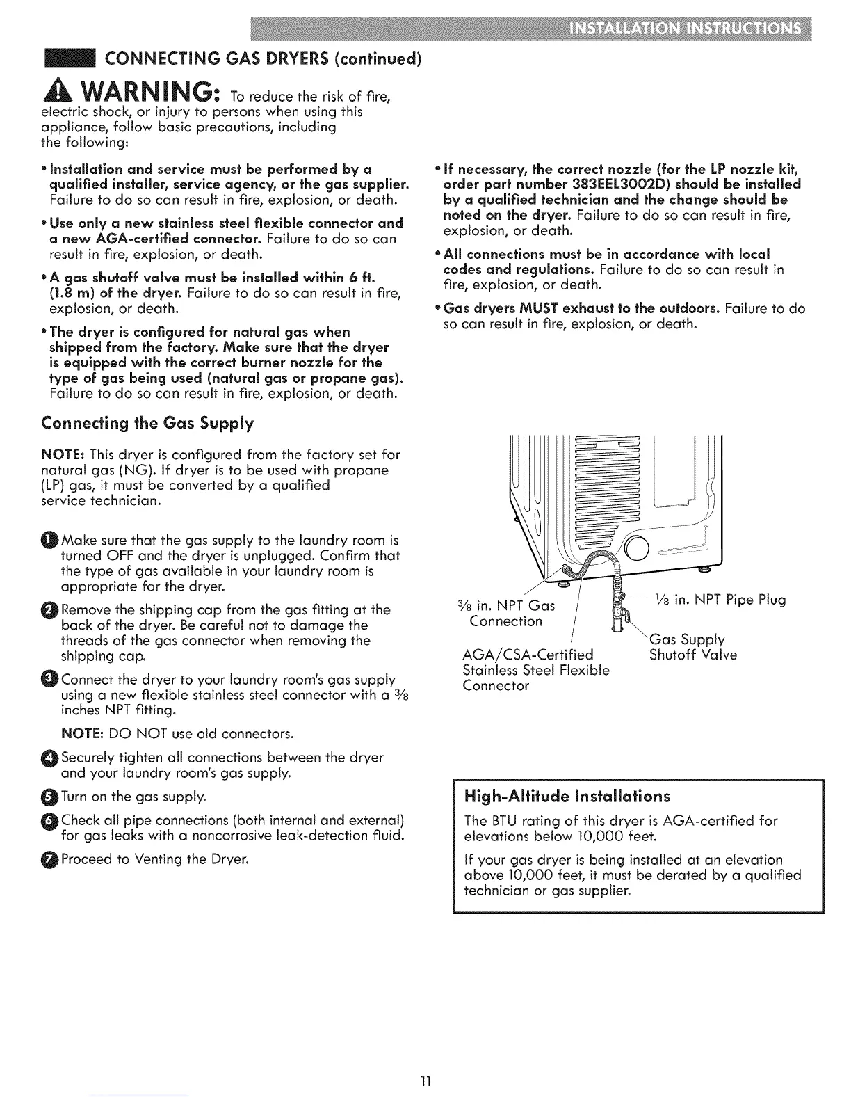 if your gas dryer is being installed at an elevation
