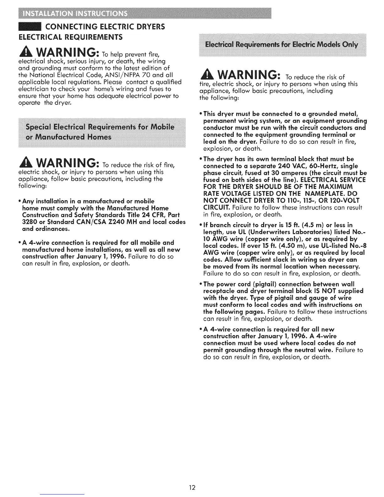 codes. Allow sumclent slack in wiring so dryer can