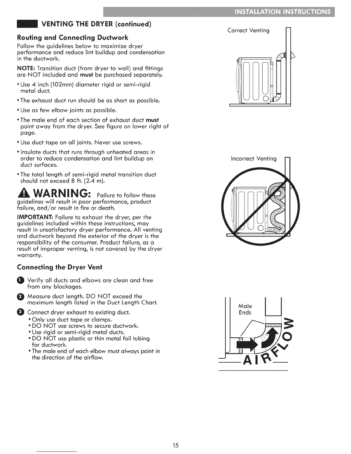 * Use 4 inch (102mm) diameter rigid or semi-rigid