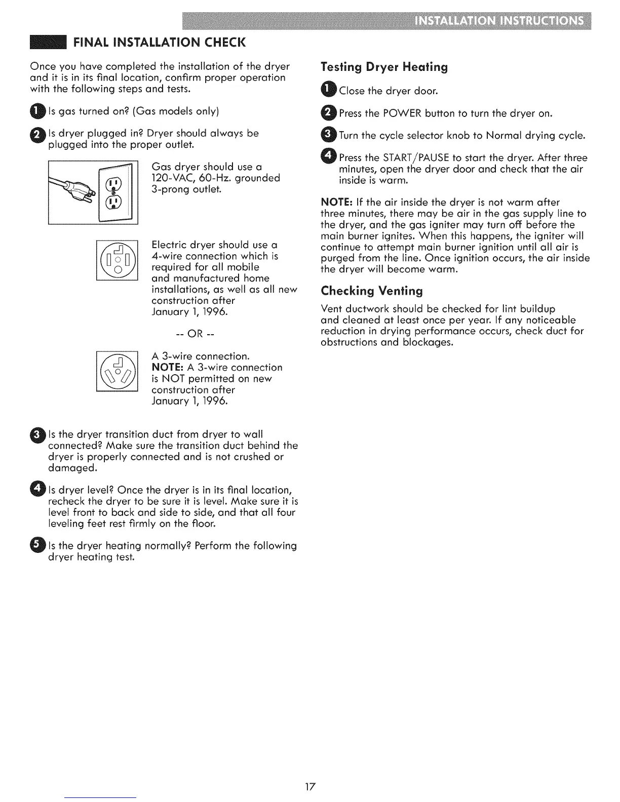 Once you have completed the installation of the dryer