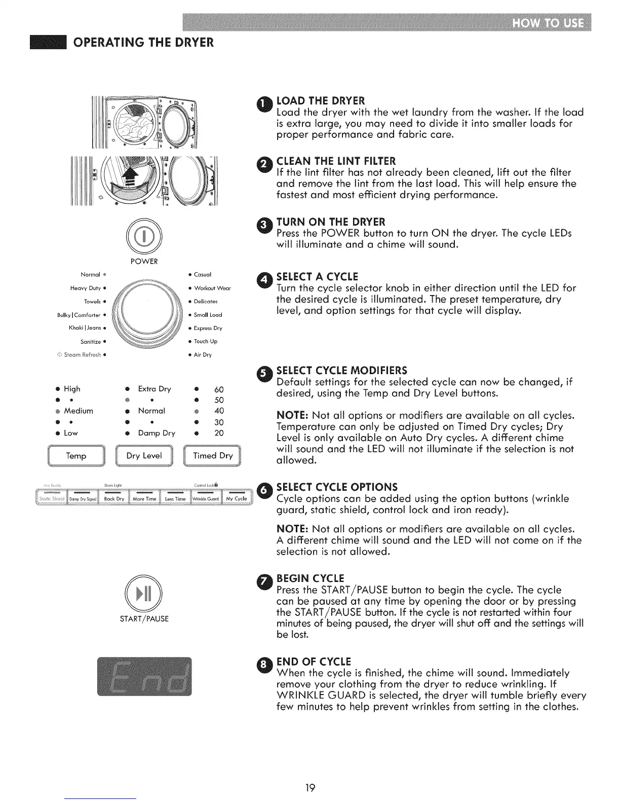 Press the POWER button to turn ON the dryer. The cycle LEDs