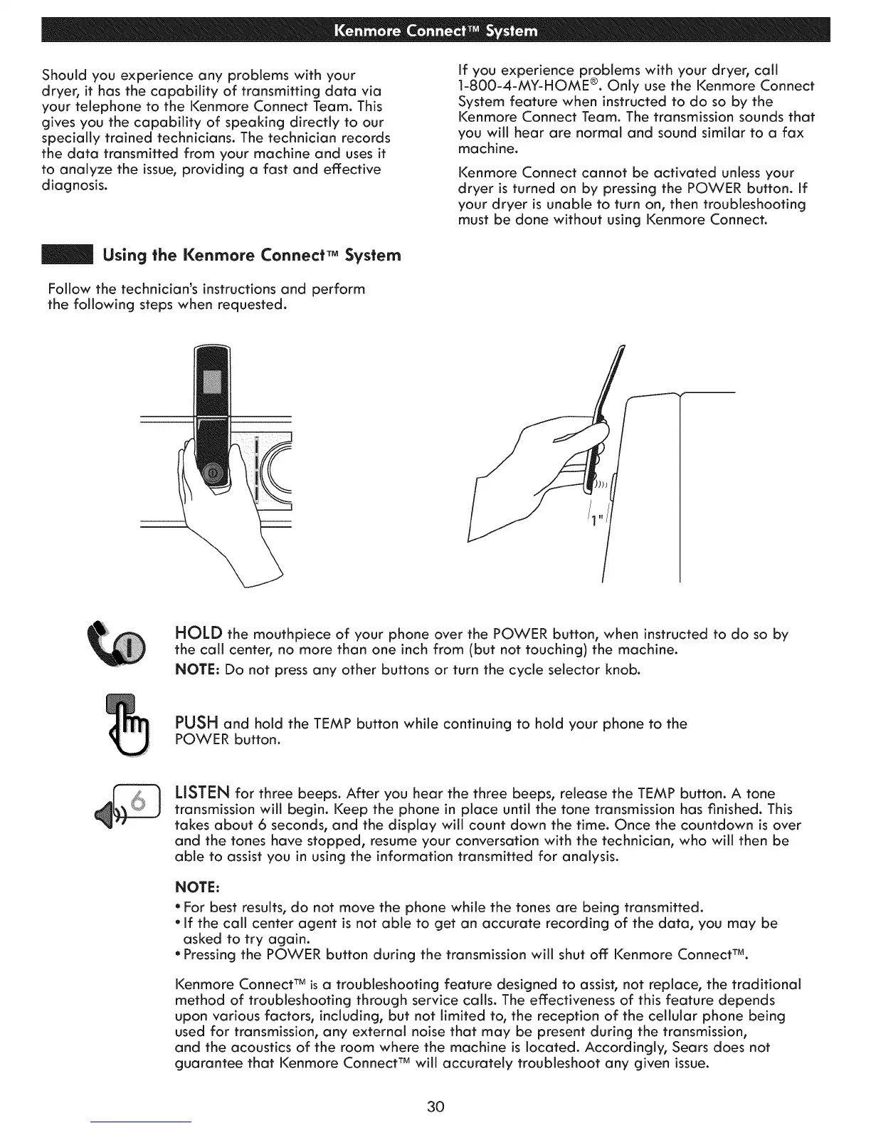 Kenmore Connect TM is a troubleshooting feature designed to assist, not replace, the traditional