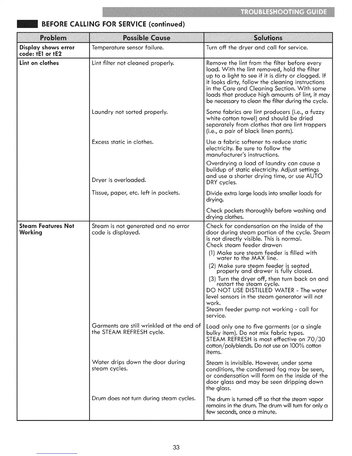 BEFORE CALLING FOR SERVICE (continued)