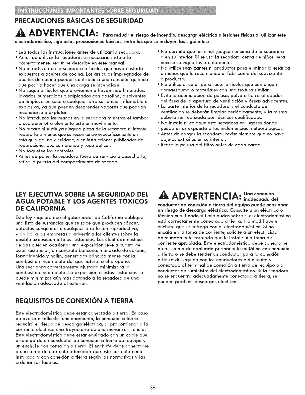 Este electrodom_stico debe estar conectado a tierra. En caso