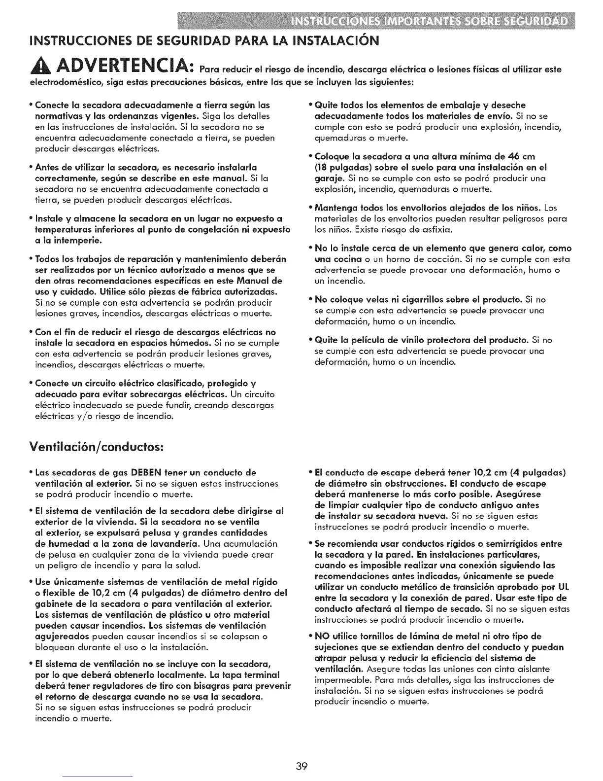 * [nstaie y a[macene [a secadora en un [ugar no expgesto a