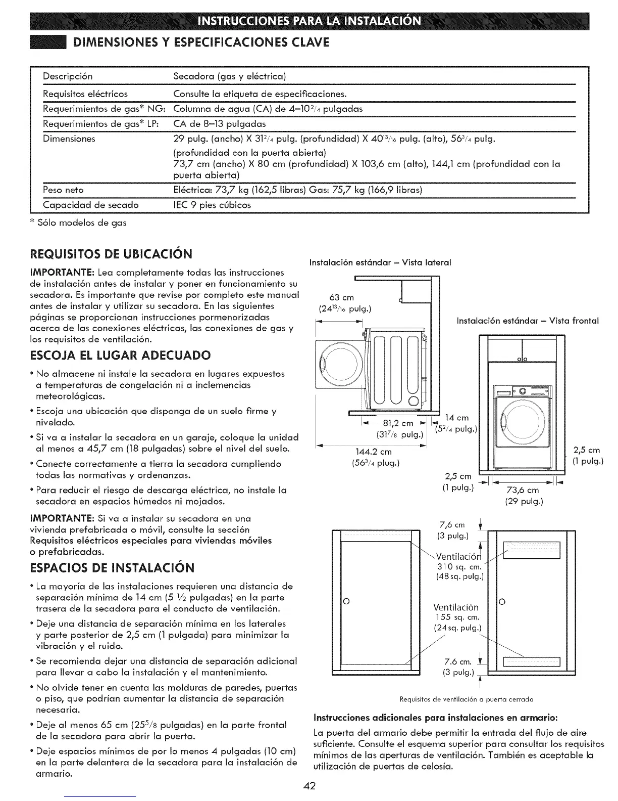 antes de instaiar y utiiizar su secadora. En ias sicjuientes
