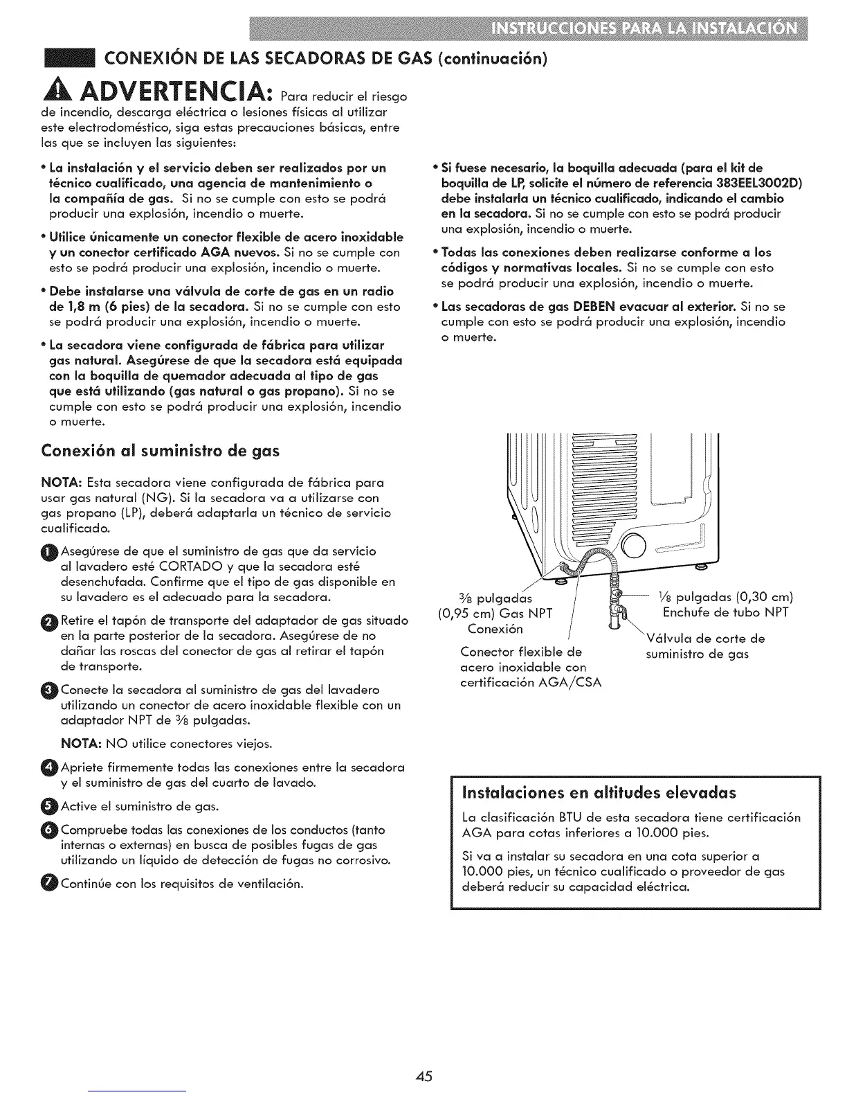 CONEXlON DE LAS SECADORAS DE GAS (confinuaci6n)