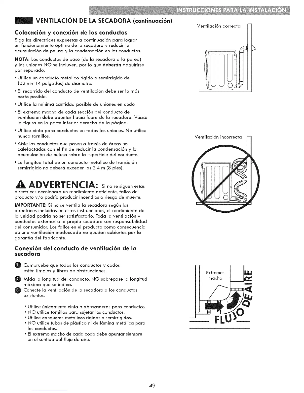 IMPORTANTE: Si no se ventila la secadora secjOn las