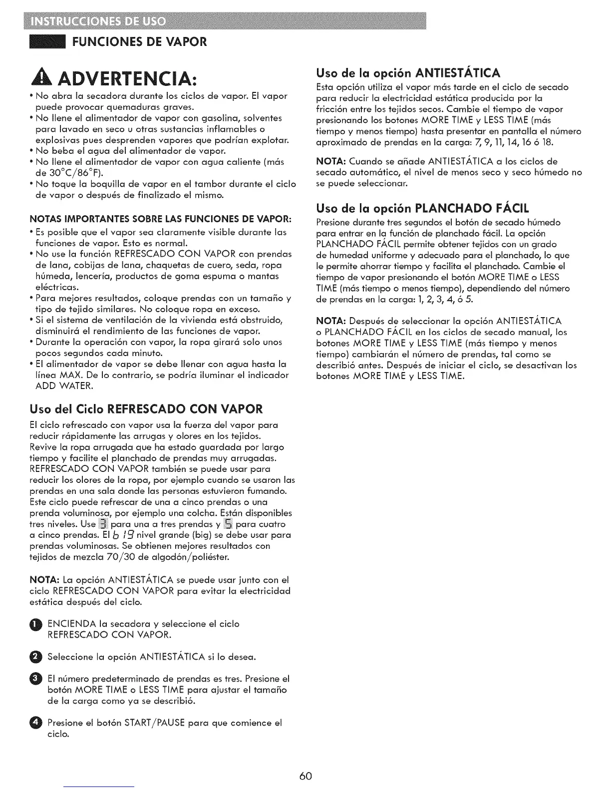 ° Durante ia operaci6n con vapor, ia ropa cjirar6 solo unos