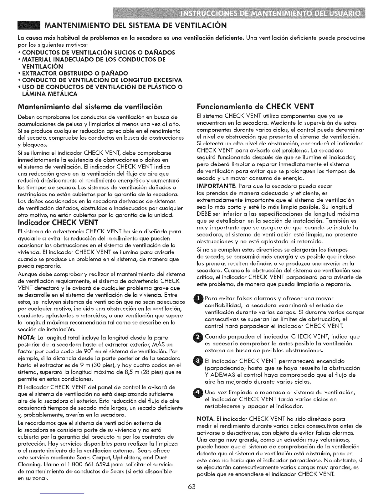 o el mantenimiento de la ventilaci6n externa. Sears ofrece