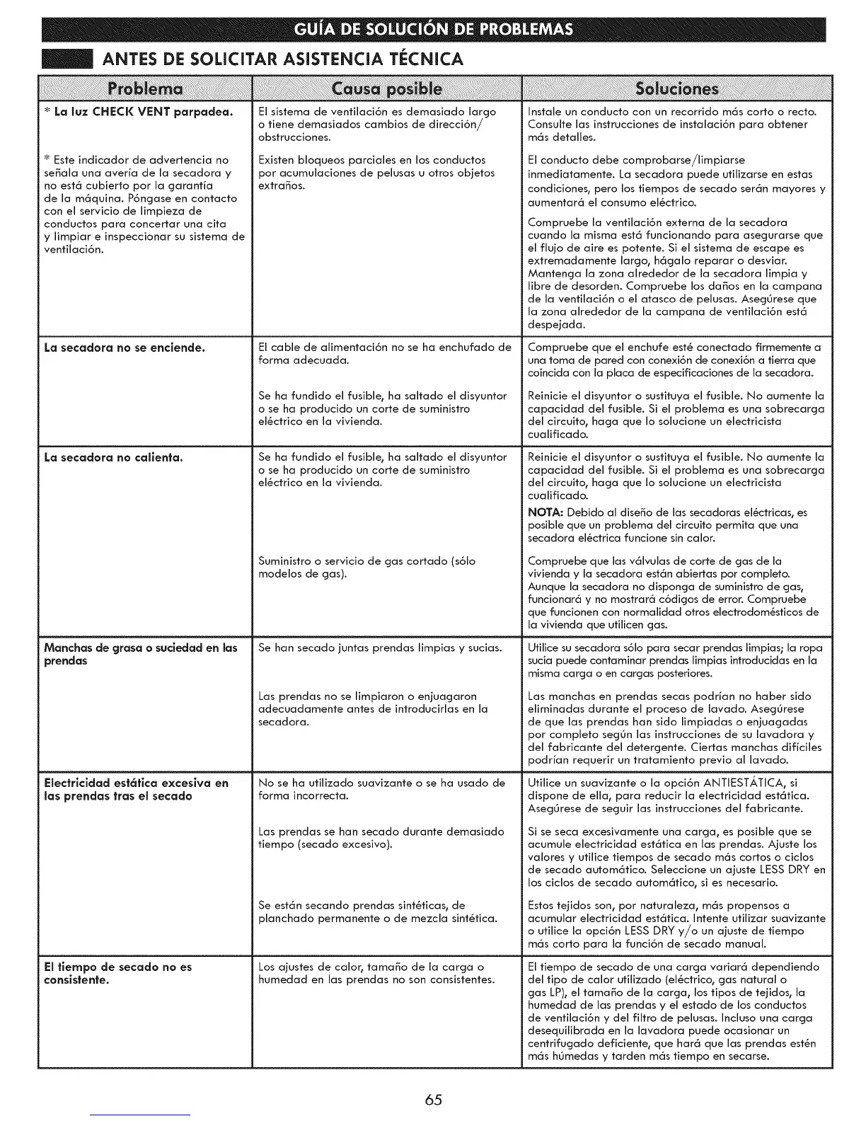 de la ventilaci6n o el atasco de pelusas. Aseg0rese que