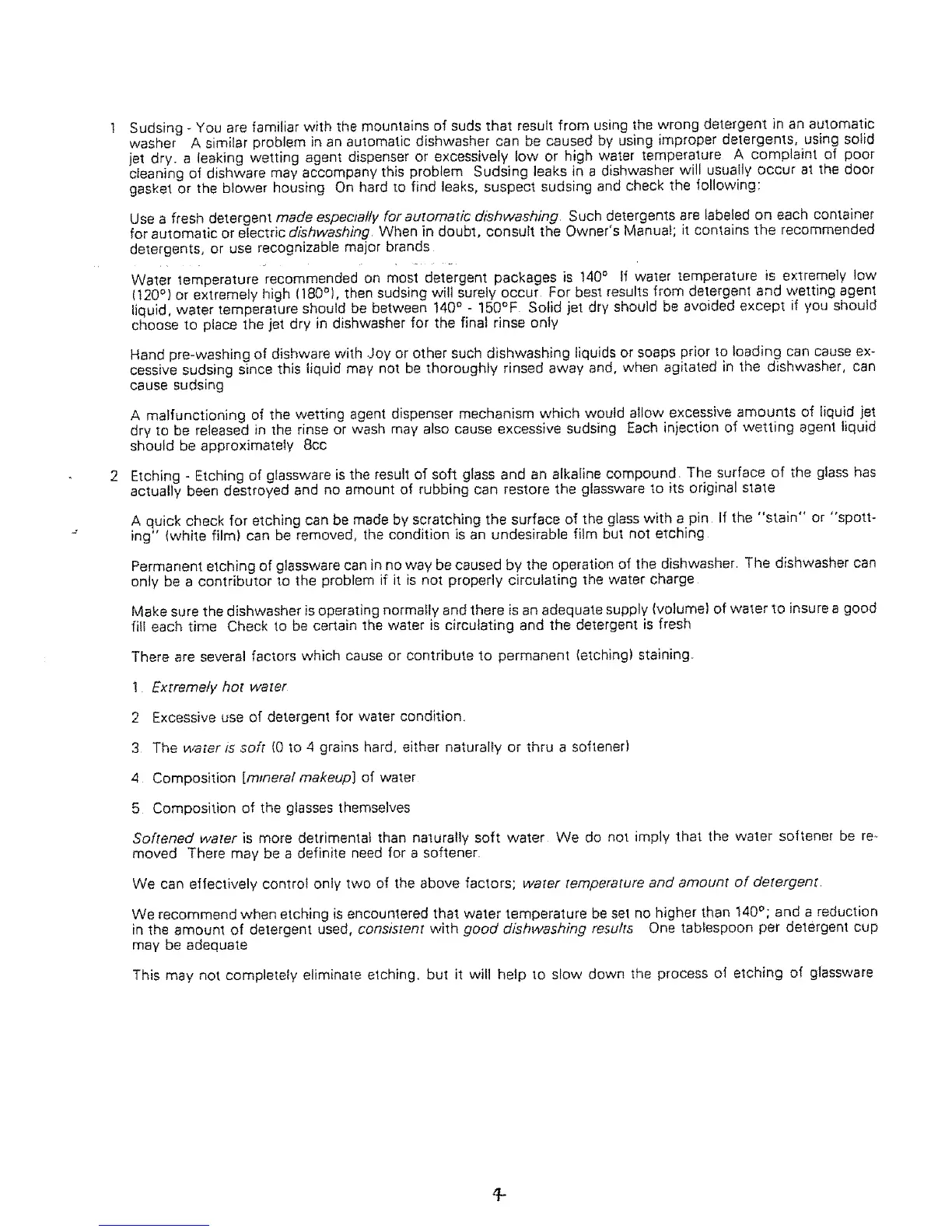 Hand pre-washing of dishware with .Joy or other such dishwashing liquids or soaps prior 1o loading can cause ex-