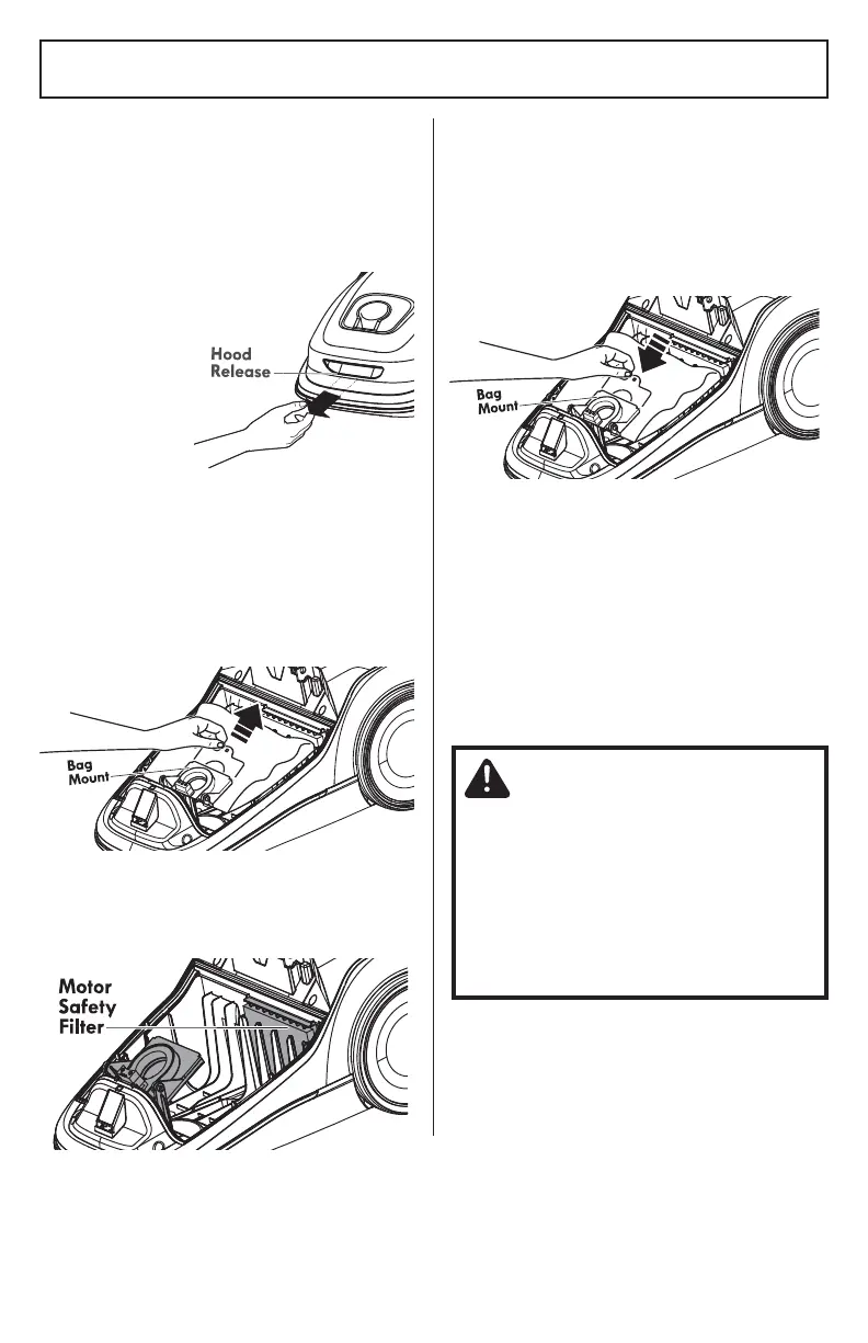 removing bag. This will prevent the hood