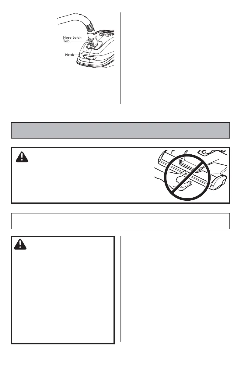 hose latch tab snaps into place. The