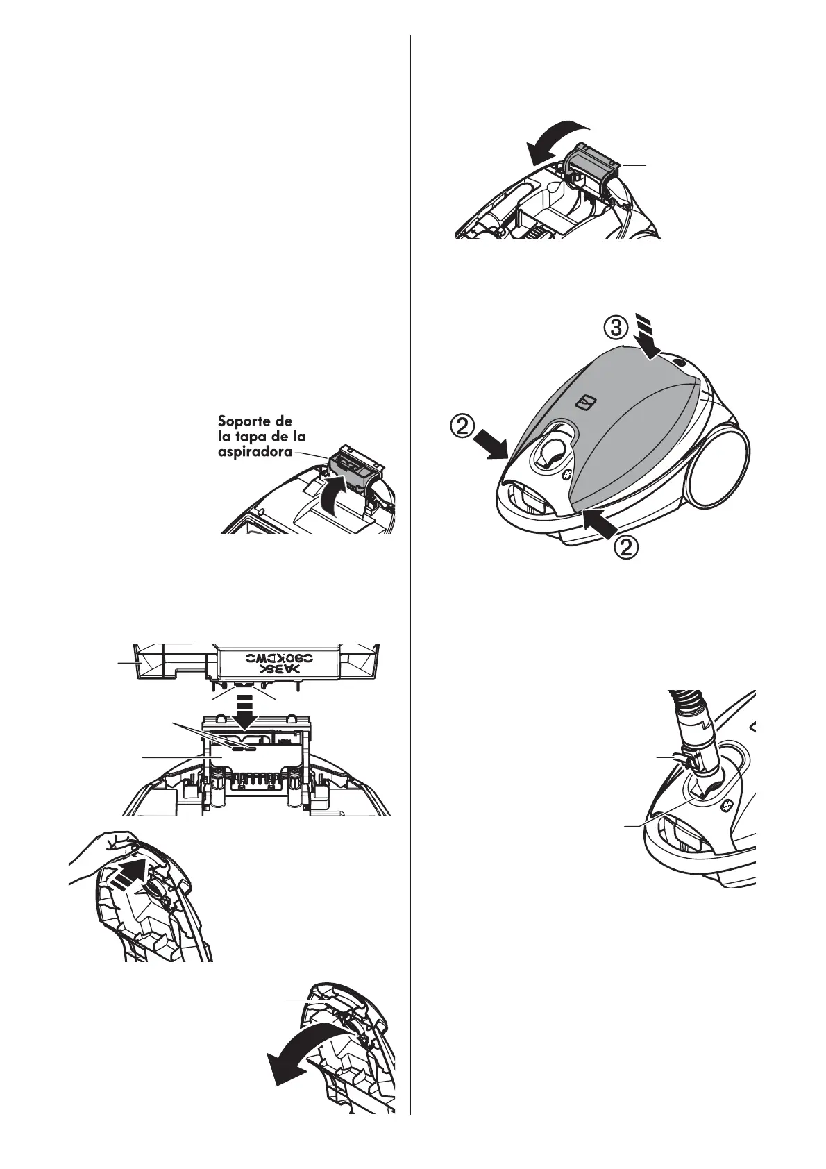tapa de la aspiradora. Presione la tapa en