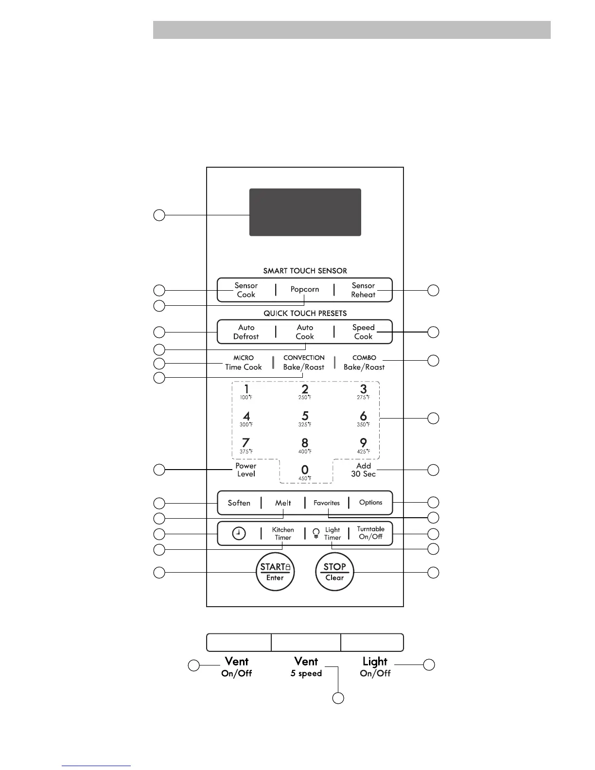 Your microwave oven control panel lets you select the desired cooking function quickly and easily.