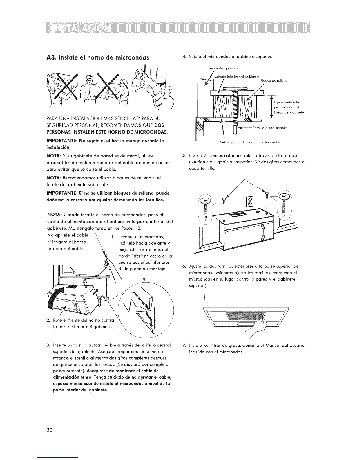 NOTA: Cuando instale el homo de microondas_ pase el