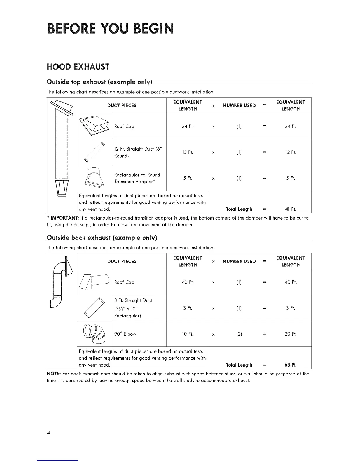any vent hood. Total Length = 63 Ft.