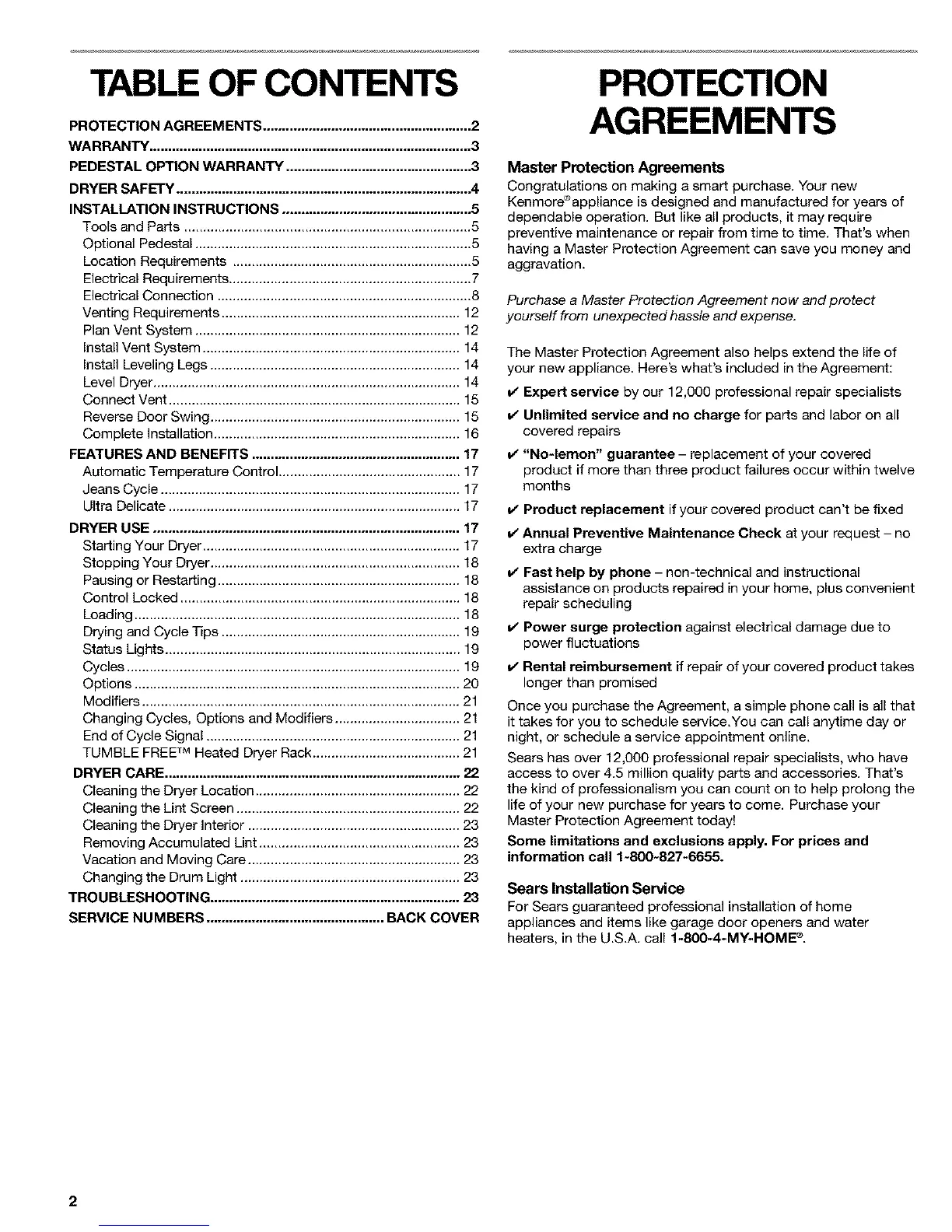 PEDESTAL OPTION WARRANTY ................................................. 3