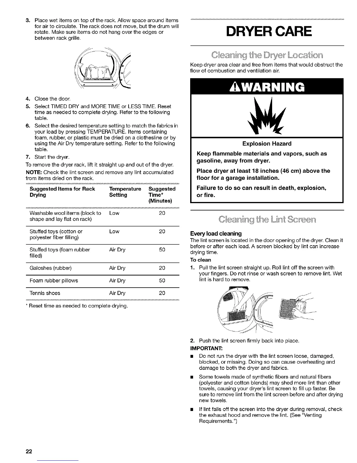 Keep dryer area clear and free from items that would obstruct the