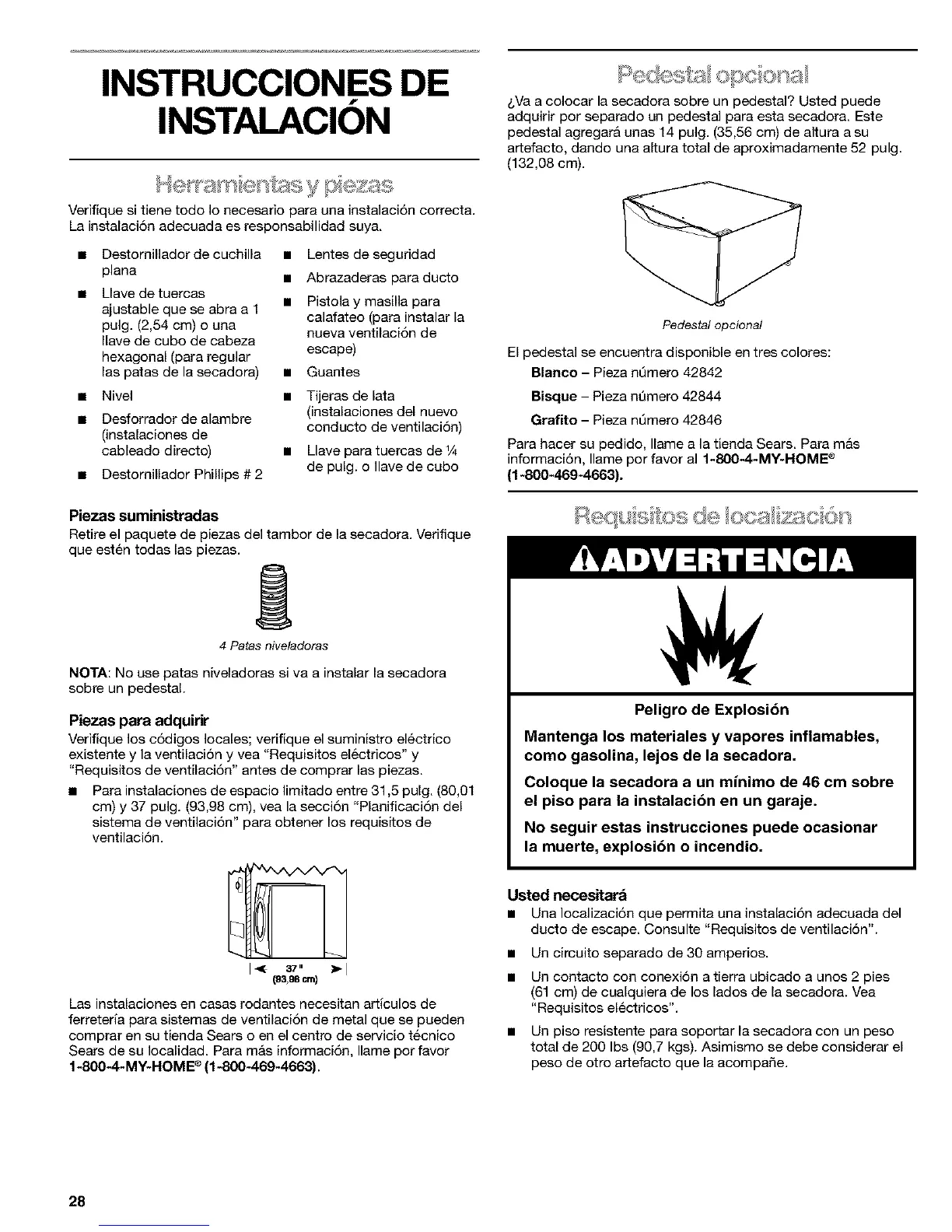 (61 cm) de cualquiera de los lados de la secadora. Vea
