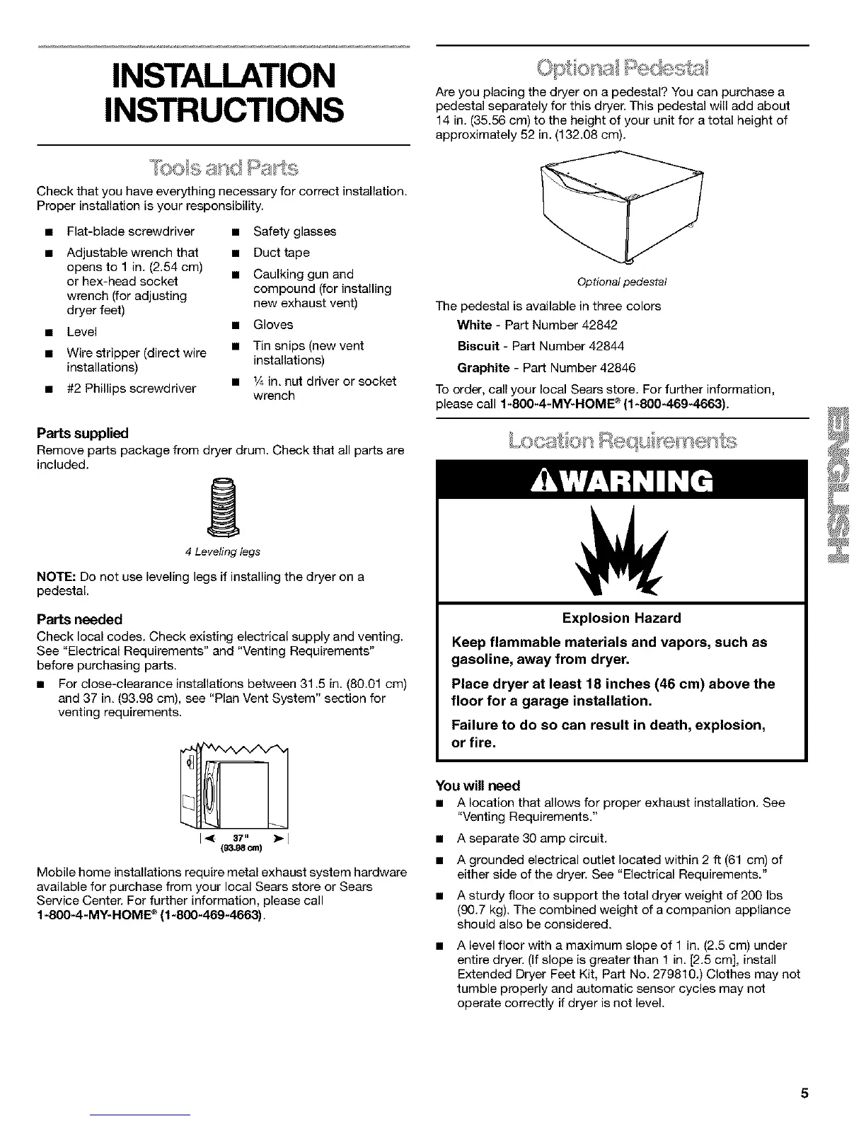 • A sturdy floor to support the total dryer weight of 200 Ibs