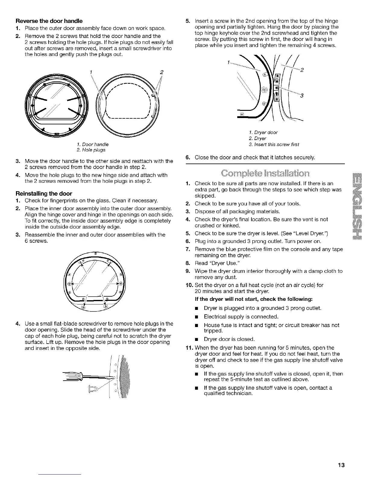 5. Check to be sure the dryer is level. (See "Level Dryer.")