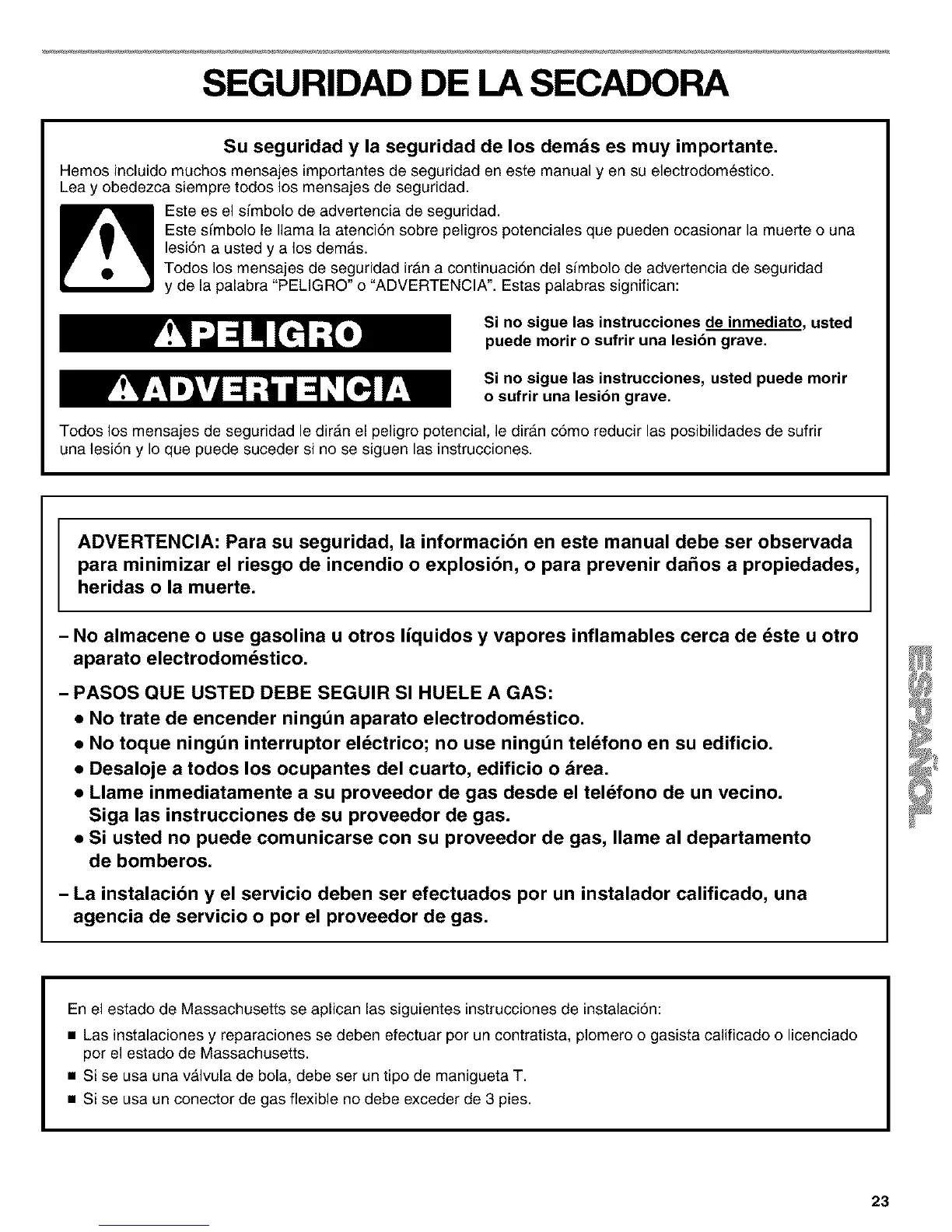 En el estado de Massachusetts se aplican las siguientes instrucciones de instalaci6n: