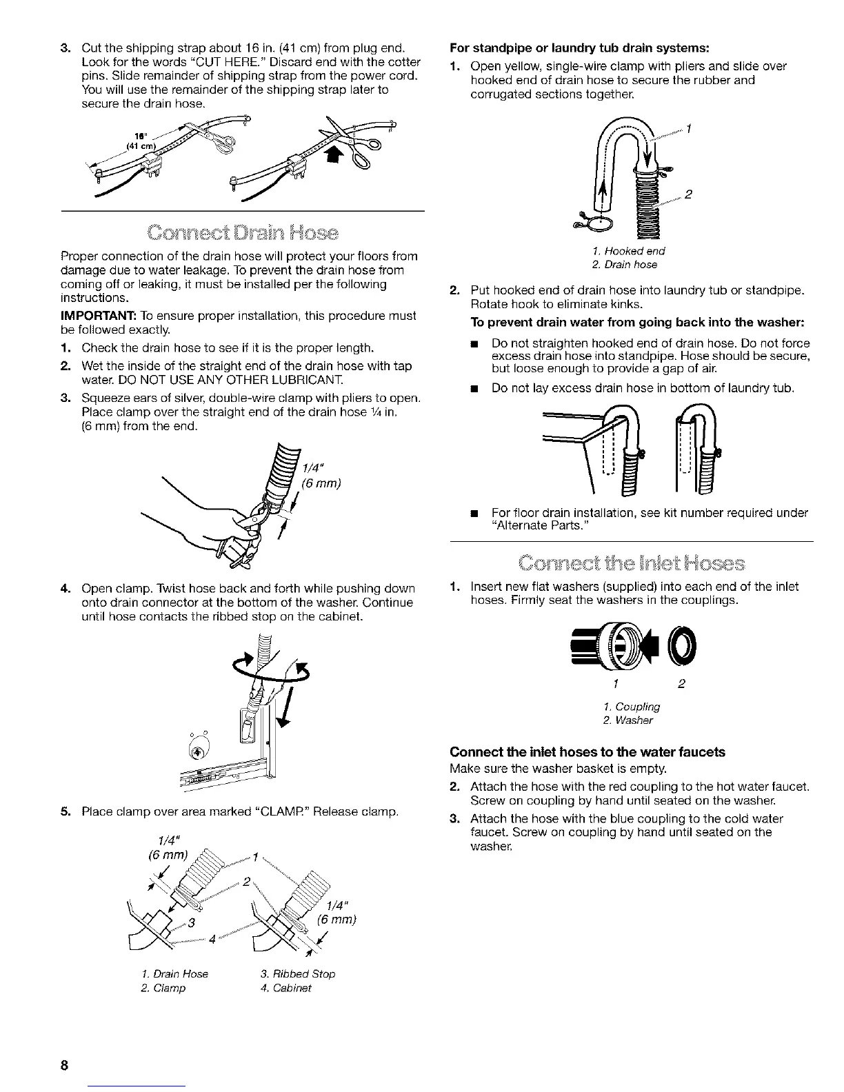 hoses. Firmly seat the washers in the couplings.