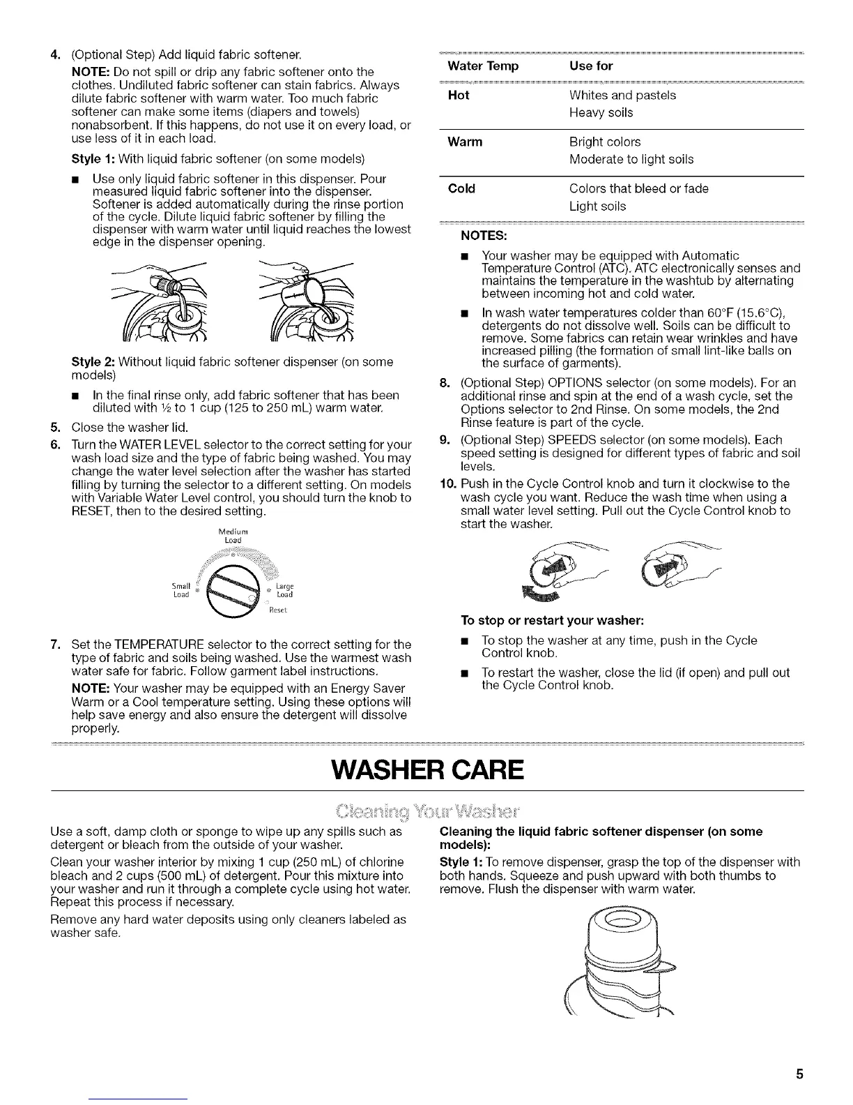 NOTE: Your washer may be equipped with an Energy Saver