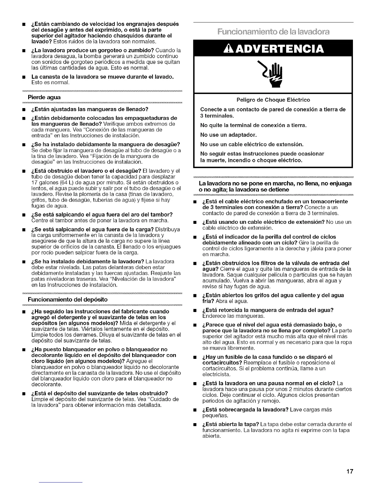 • &La lavadora produce un gorgoteo o zumbido? Cuando la
