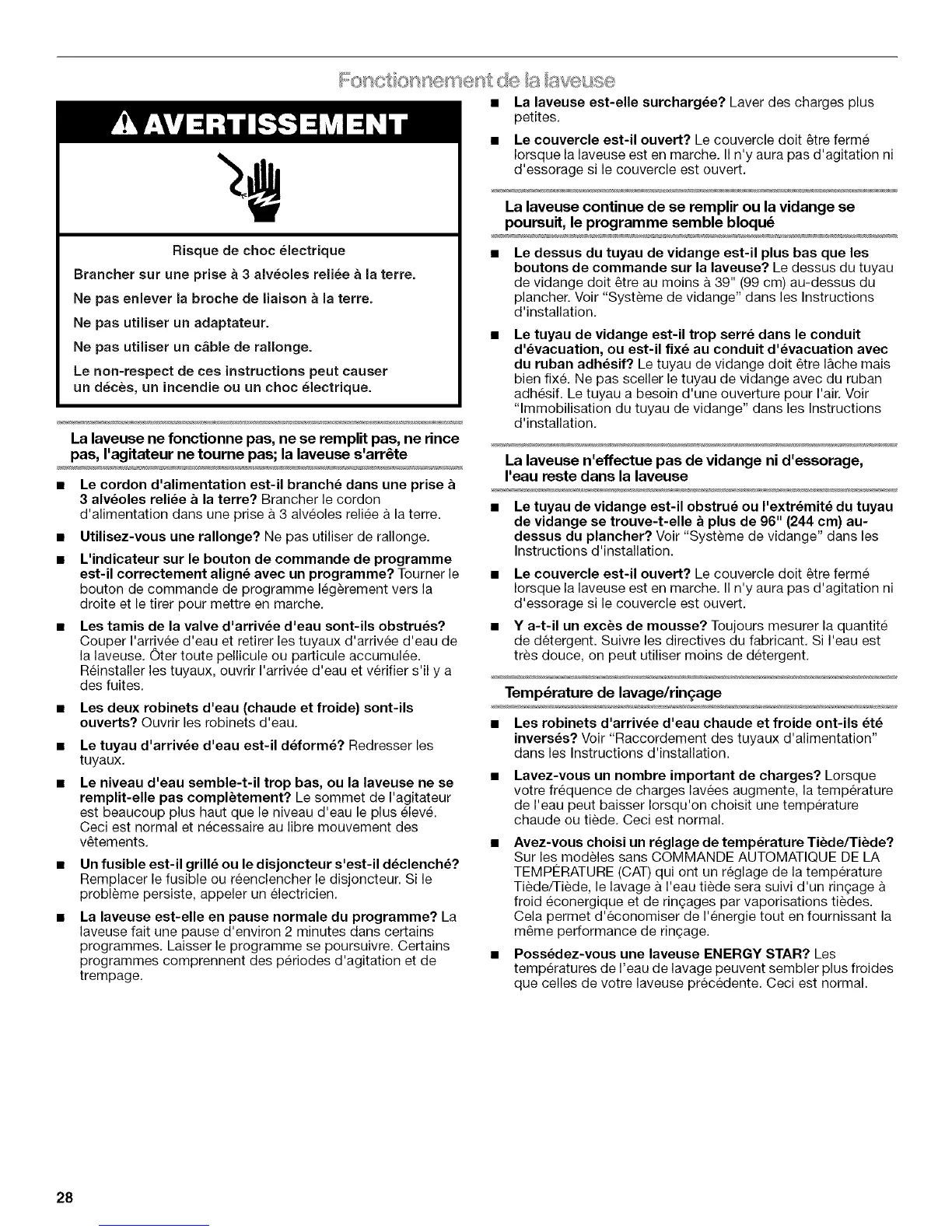 Iorsque la laveuse est en marche. II n'y aura pas d'agitation ni