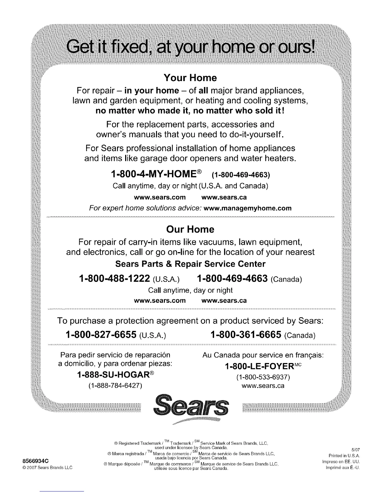 ® Registered Trademark / Trademark / Service Mark of Sears Brands, LLC,