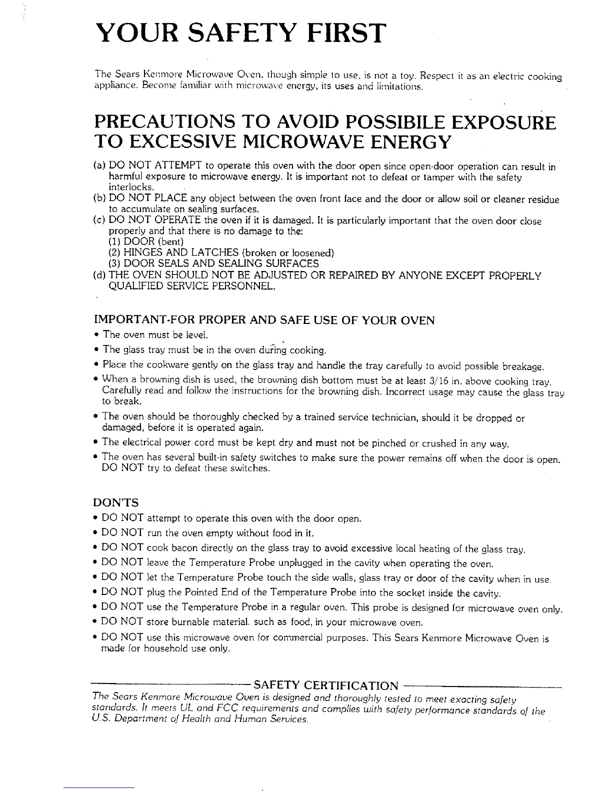 The Sears Kenrnore Microu.,aue Oven is designed and thoroughly tested to meet exacting safety