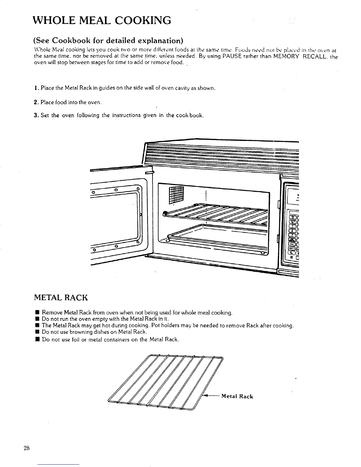 Whole Meal cooking lets you cook T_o or more diif_,r,m! foods at lh_.' same tim,.' Food_ nosd nol be pIao.'d in Ihc o_,.,n at