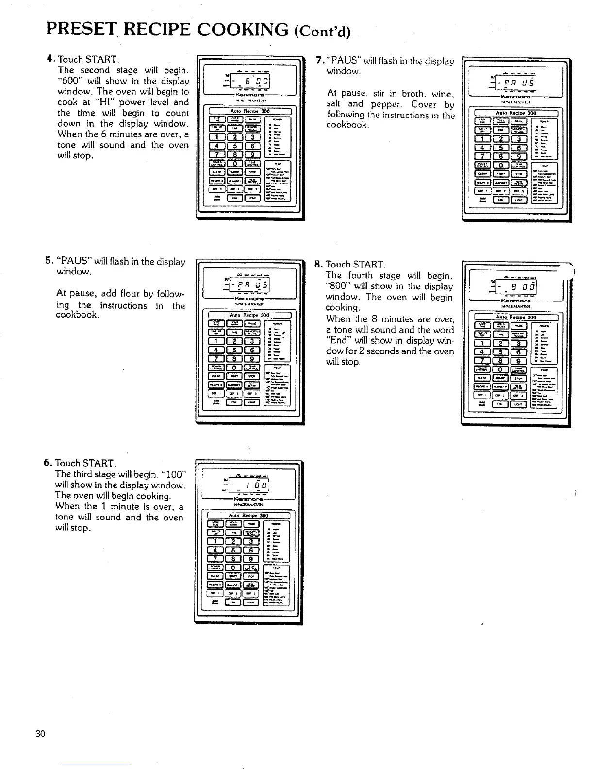 PRESET RECIPE COOKING (Cont'd)